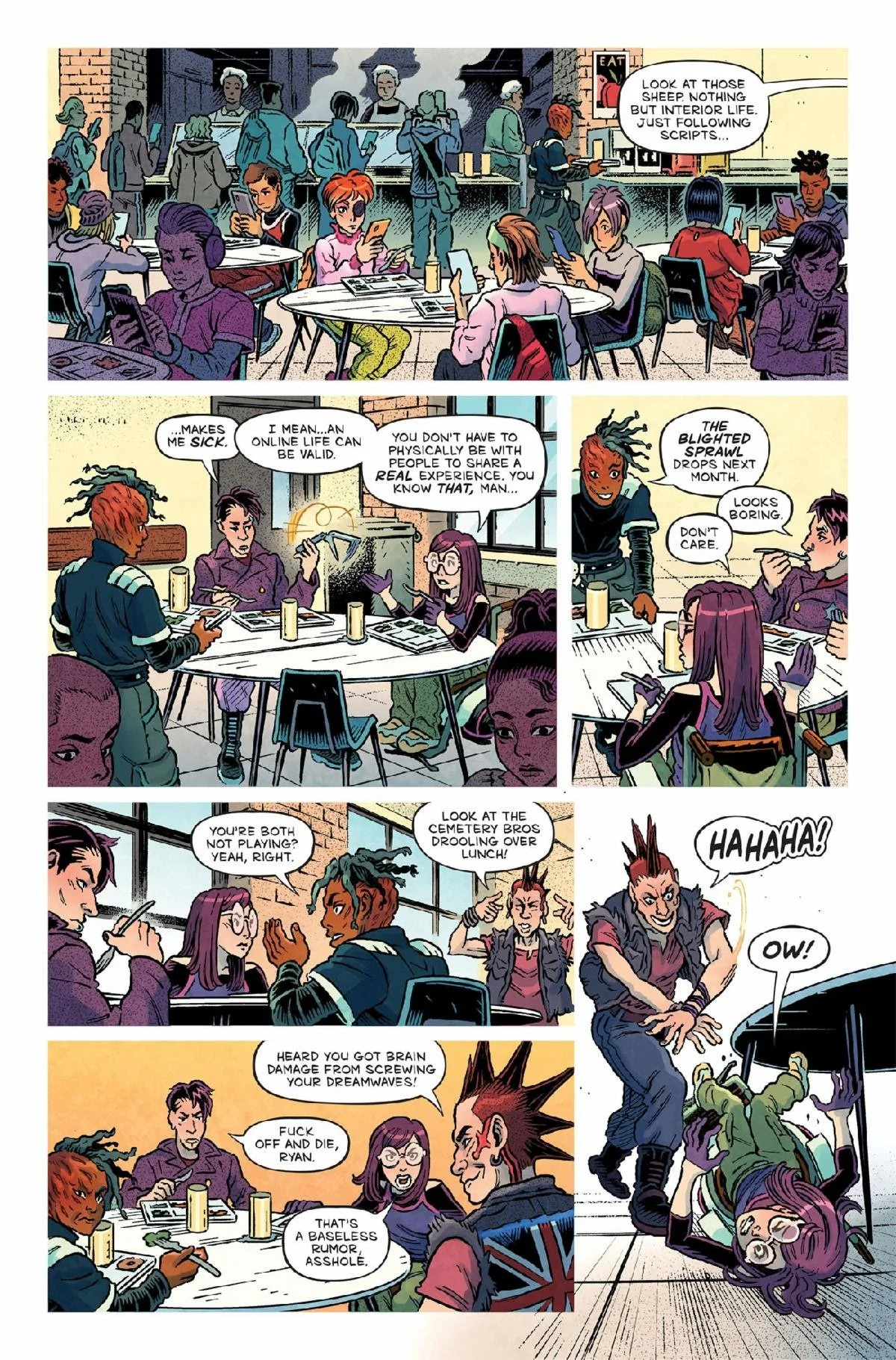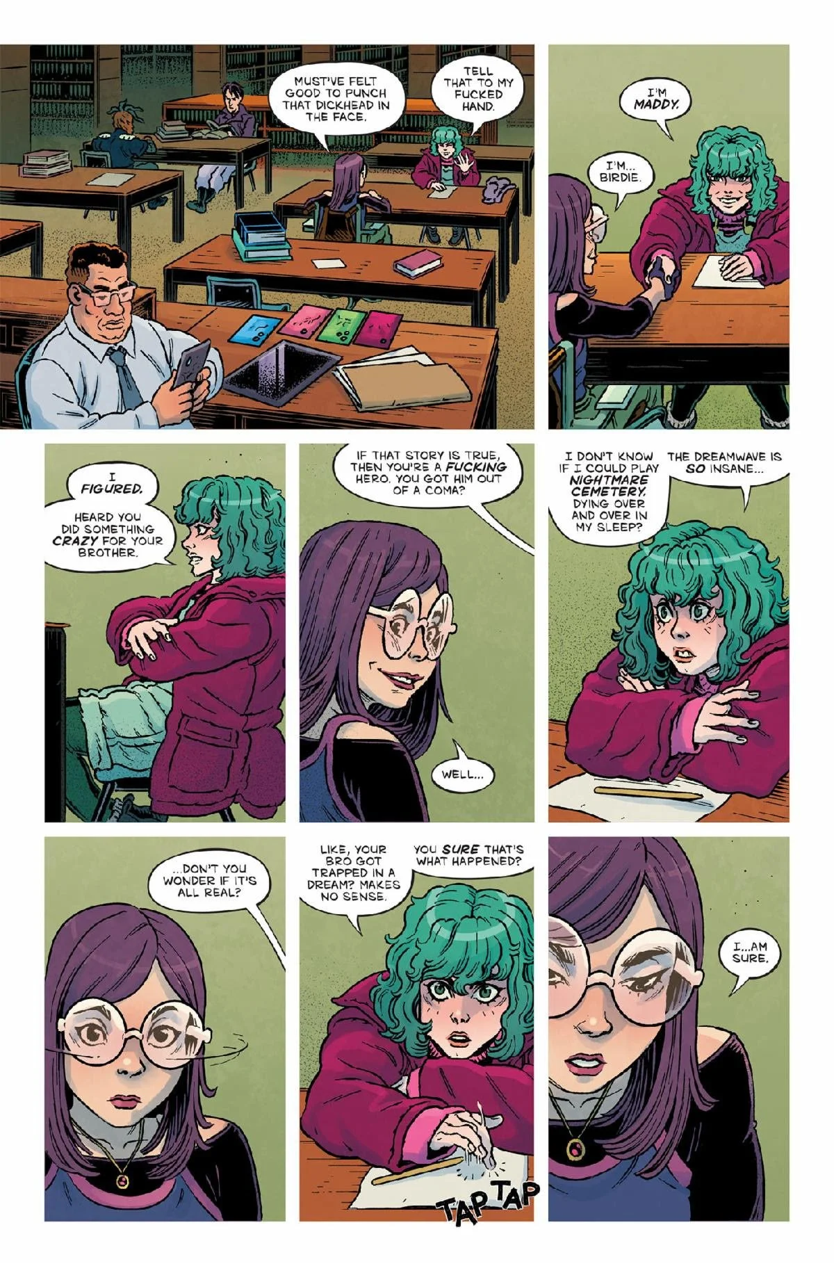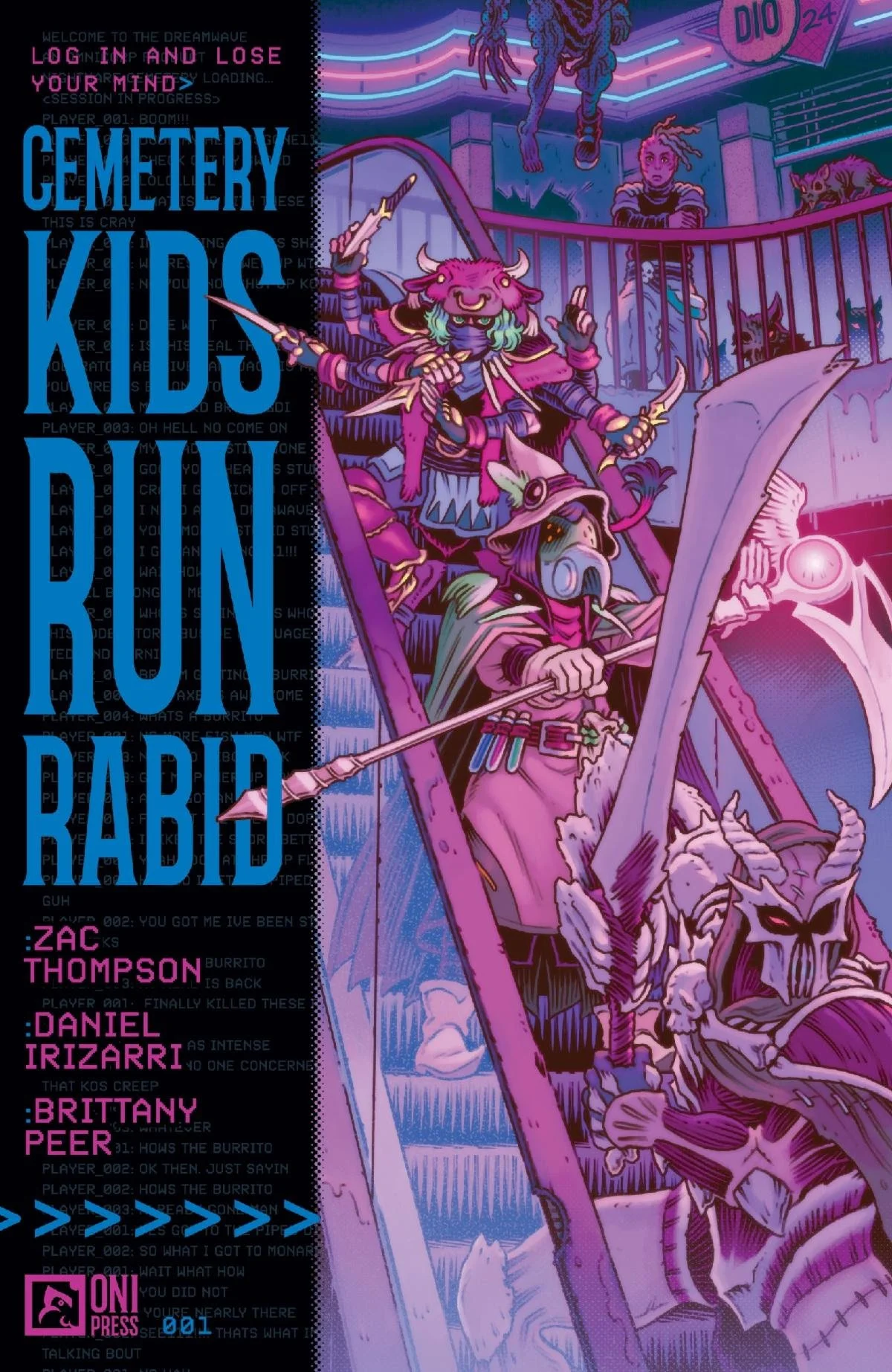 Oni Press, the multiple Eisner and Harvey Award-winning publisher of groundbreaking comics and graphic novels since 1997, is proud to present the first look inside CEMETERY KIDS RUN RABID #1 – an all-new jumping-on point for the serotonin-splattered video game horror hit from Zac Thompson (Into the Unbeing – Parts 1 & 2) and Daniel Irizarri (EC’s Cruel Universe, Judge Dredd) that began with CEMETERY KIDS DON’T DIE! On August 13th, sit back, relax, and surrender your mortal consciousness to the CPU of the Dreamwave – the world’s first video game system played exclusively in your sleep – even though its players sometimes don’t wake up…