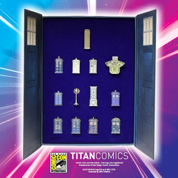 This is the only opportunity for global Doctor Who fans to buy this world exclusive Thirteen-Piece TARDIS VOLUME TWO Enamel Pin Collection! A sequel set to 2023's LONG-SOLD-OUT original TARDIS pin set, featuring an ALL-NEW line up of TARDIS pin variants for 2025! Please note: this beautiful TARDIS collection will only be available from Titan Booth #5537 - from Preview Night, Wednesday July 23rd, onwards. Numbers are EXTREMELY LIMITED. First come, first served - while stocks last!!